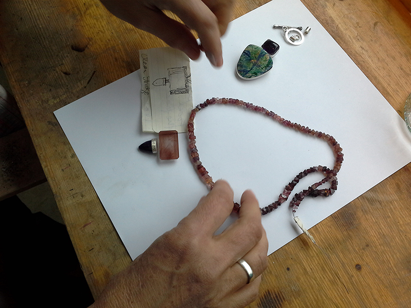 This process leads to work that's irregular, asymmetrical, and truly unique. Just as no two stones are alike no two pieces of my work are alike. I often let things ‘marinate’ together for a while before I make a piece. While each piece is actually meticulously planned, there is always a bit of room for playing around.